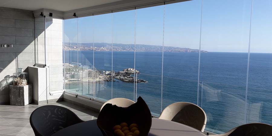 Los cierres de cristal plegables Lumon, con la tecnología de Finlandia, son cristales sin marco, con un diseño funcional e innovador que permiten tener una visión libre y panorámica, sin perfiles visibles, que no daña la estética del edificio, ni la vista desde adentro dando protección y seguridad en tu terraza.